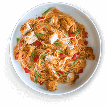 Thai rice noodles stir-fried with bean curd, chinese chives, peanuts and beans sprouts in a special homemade sauce