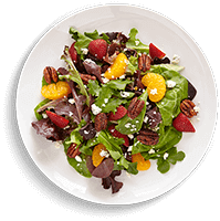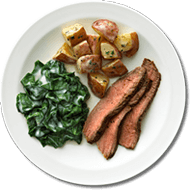 Grill sirloin beef with cracked black pepper. Served with green salad and sweet and sour sauce on the side
